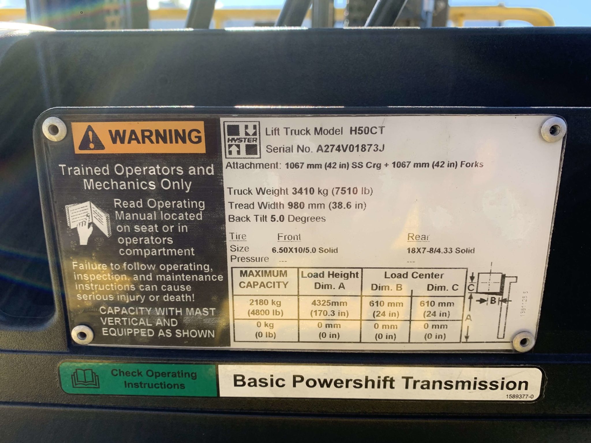 Hyster H50CT Specifications-